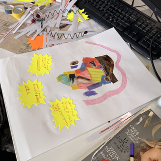 Art from one of our first workshops with students from Cheshire College South and West creating collage portraits